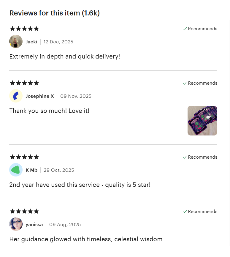 No Refunds: As each reading is created individually and delivered as a digital file, all sales are final once the reading is completed.