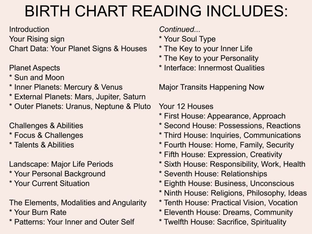 YOUR ASTROLOGY BIRTH CHART READING INCLUDES: