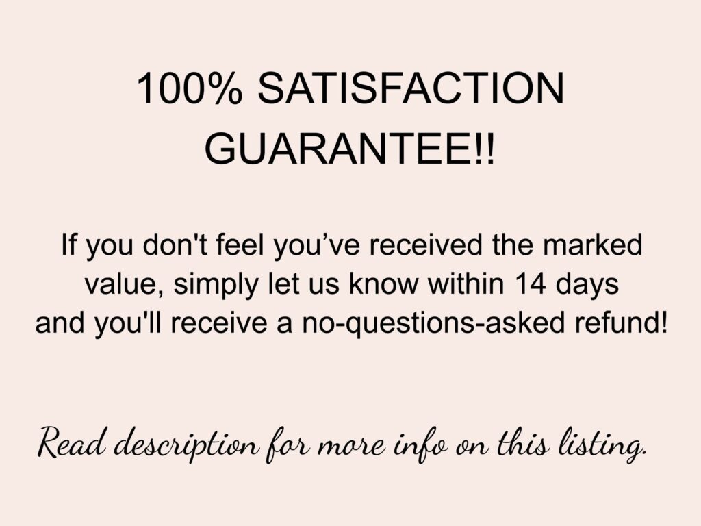 ★ 100% Satisfaction Guarantee. If you don’t feel you’ve received the marked value, simply let us know within 14 days and you’ll receive a no-questions-asked refund!
