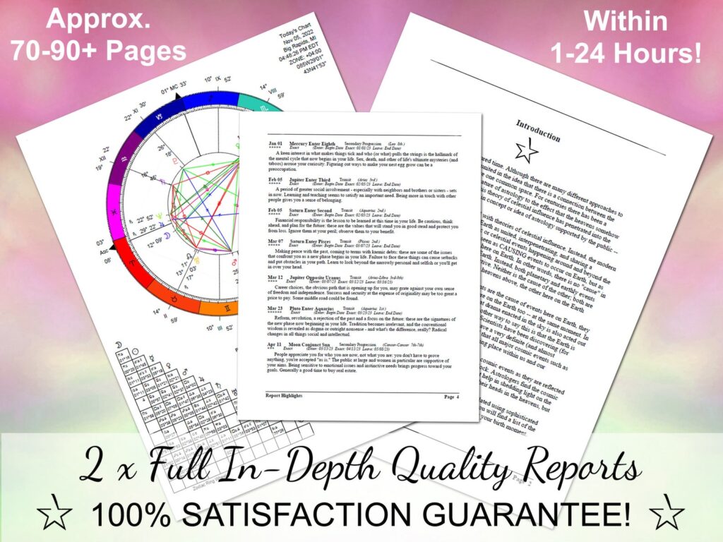 Astrology Birth Chart Report + 1 Year Astrology Forecast Report + Birth Chart Wheel (3 items) – full details below!!